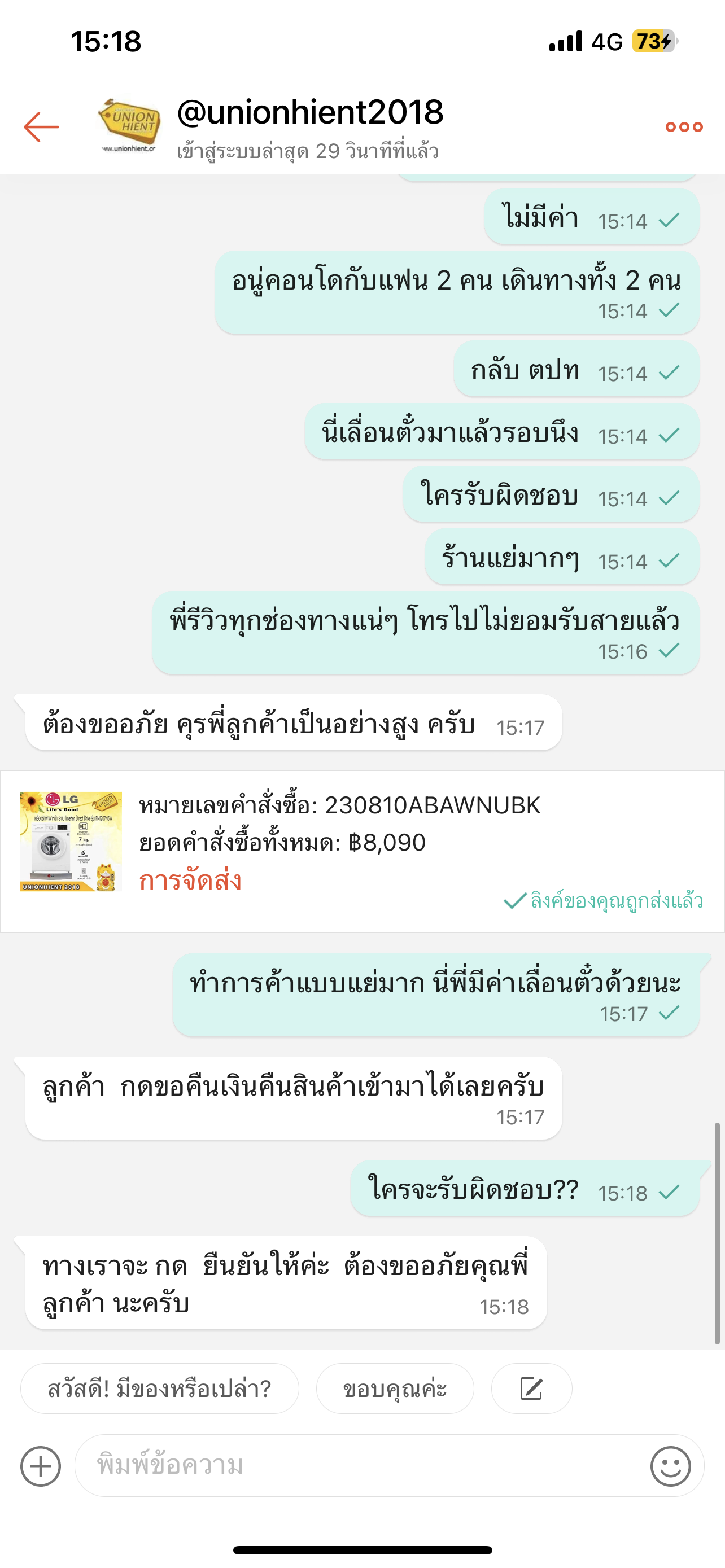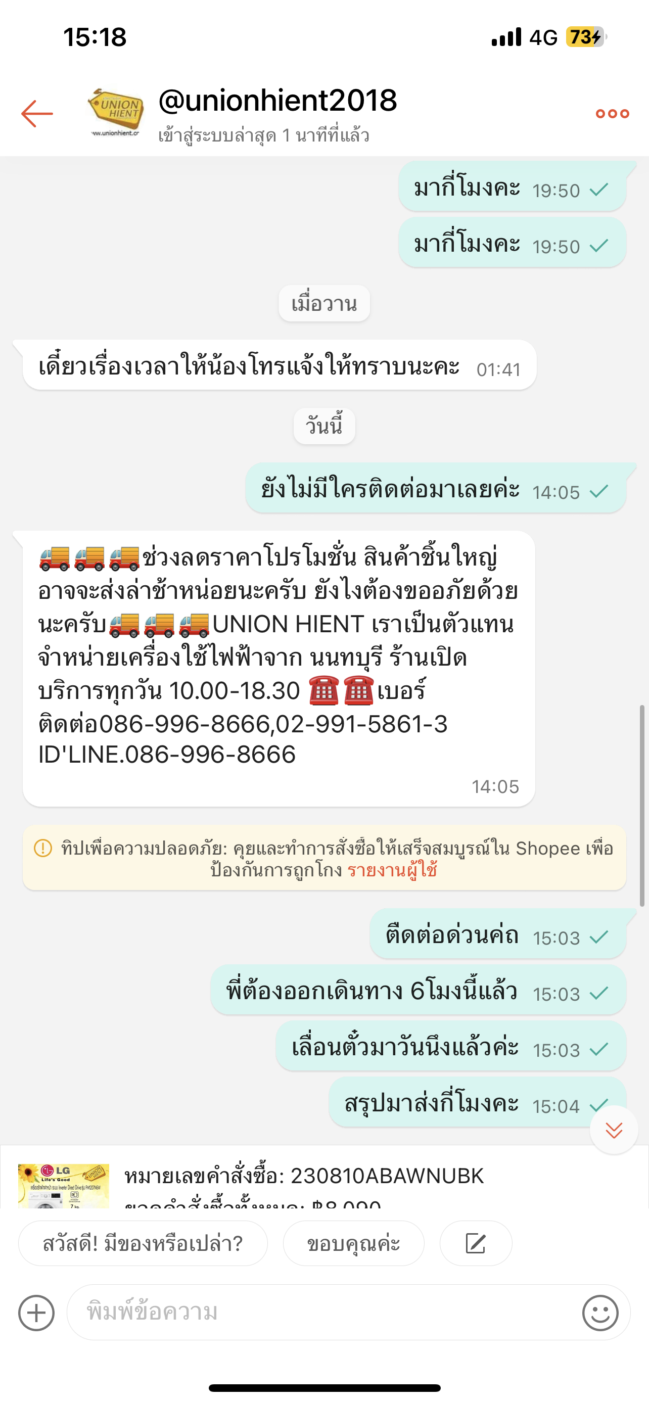 ความประทับใจที่มีต่อร้าน ยูเนี่ยนไฮ-เอนท์ ที่ลูกค้าคนนี้ได้ประสบด้วยตัวเองมีดังนี้ครับ (1) เจ้าหน้าที่ใส่ใจลูกค้าชนิดน่าประทับใจ ตอบคำถาม ให้ข้อมูลทางโทรศัพท์ และทางไลน์อย่างดี และมีอัธยาศัยดี (2) เมื่อลูกค้าสนใจสินค้าที่เพิ่งตกรุ่นหาค่อนข้างยาก ทางร้านอาสาที่จะหาให้ ซึ่งต่างจากหลายร้านซึ่งพอไม่มีของก็บอกปัดไปเลยว่าไม่มีให้ไปซื้อรุ่นอื่นที่อยู่นอกงบของลูกค้า (3) ความหลากหลายของวิธีการชำระค่าสินค้าร้านนี้สุดยอดโดยเฉพาะบัตรเครดิต รับหลายบัตรรวมทั้ง First Choice 0% ผ่อน 10-15 เดือน ซึ่งหลายร้านที่ได้ติดต่อไปไม่มีบ้าง ปล่อยให้หมดอายุบ้าง และข้อแก้ตัวอื่นๆอีกเยอะ ที่ทำให้ลูกค้ารำคาญ (4) ร้านให้ทางเลือกในการผ่อนสินค้าที่หลากหลาย เดิมผมกะจะผ่อนแค่ 10 เดือน แต่ร้านมีให้เลือกถึง 15 เดือน ซึ่งก็ช่วยผมได้มาก (5) ร้านยังเปิดให้บริการแม้จะเป็นวันหยุดยาว ซึ่งบางร้านบอปัดว่าปิด สุดท้ายนี้หวังว่าผู้อ่านคงจะได้รับประโยชน์จากความเห็นประกอบการตัดสินใจเลือกร้านที่จะซื้อเครื่องใช้ไฟฟ้านะครับ
