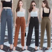 ราคา กางเกงขายาว ทรงกระบอก เอวสูง ซิปข้าง