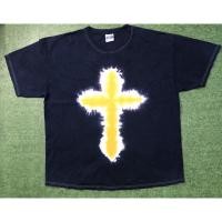ร้าน god.tee.wintage: เสื้อยืดสีกรม มัดย้อมกางเขนสวยหน้าหลัง 24.5 ยาว 30